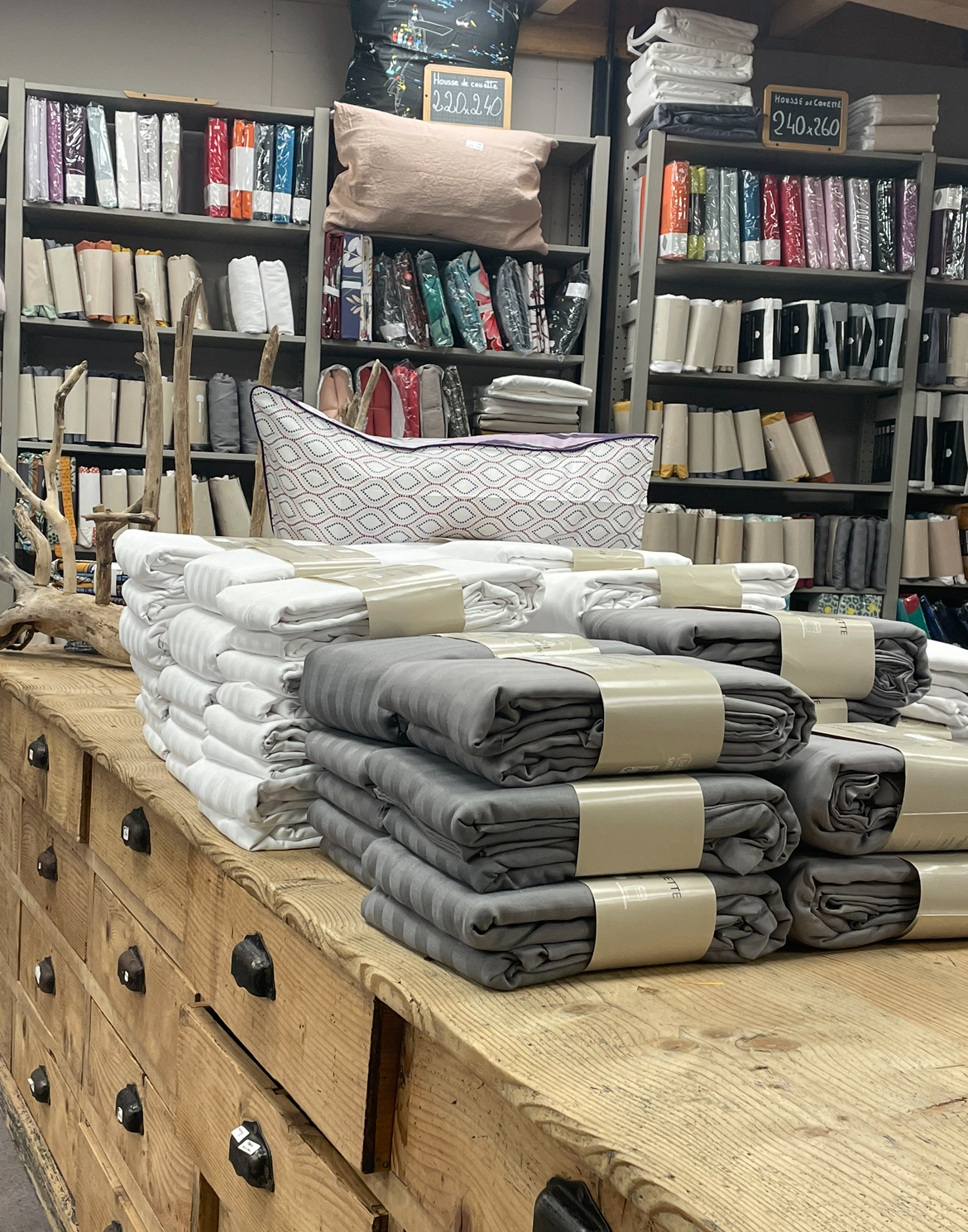 Venez découvrir notre magasin situé au 74 Avenue du Roussillon à AUBIÈRE, où vous pourrez toucher et apprécier la qualité de nos produits. nous avons aménagé des espaces dédiés à chaque type de linge de maison pour vous offrir une expérience de shopping agréable et inspirante.
